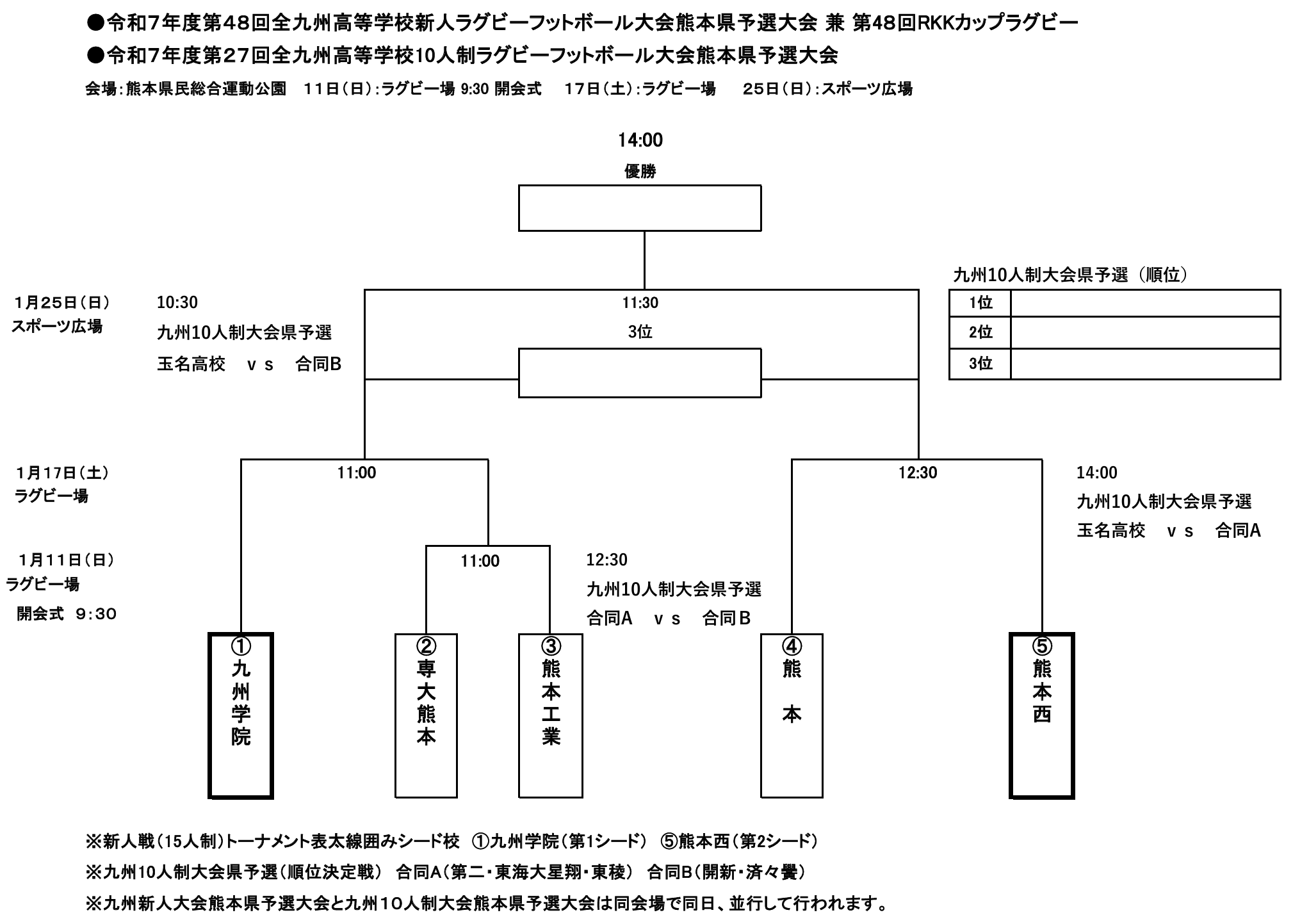 令和7年度 第48回全九州高等学校新人ラグビーフットボール大会熊本県予選大会の組み合わせが決まりました。 ご関係者の皆様(関係ない方も)ふるって応援お願いいたします。